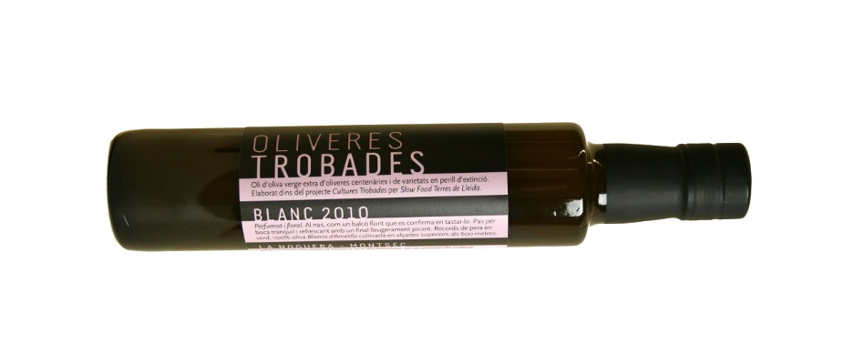 Extra virgin olive oil from centuries-old olive trees and endangered varieties. Made within the project CULTURES TROBADES of Slow Food Terres de Lleida.